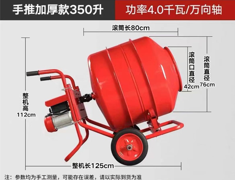 手推臥式小型攪拌機有280升、350升、400升、600升、800升共5種規(guī)格。